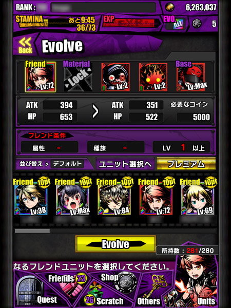 手に入れたユニットは、ほかのユニットと合成したり、進化させたりすることでより強いユニットへと成長していきますが、ここでもフレンドが活躍します。