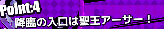 パーティーが育ってきたら、いよいよ強敵が待ち受ける「降臨ボス」に挑戦!降臨の中でも一番挑みやすいのが、最初の降臨でもある聖王アーサー。手に入れることが出来れば、とても力強い味方となってくれます。2ヶ月に1回くらいのペースで復刻していますので、最初の目標としてぜひ挑んでみましょう!